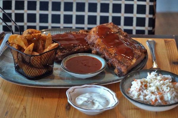 Alle Spare-Rips-Gerichte mit hausgemachten Cole Slaw Salad und wahlweise BBQ- oder Jack Daniels BBQ-Sauce